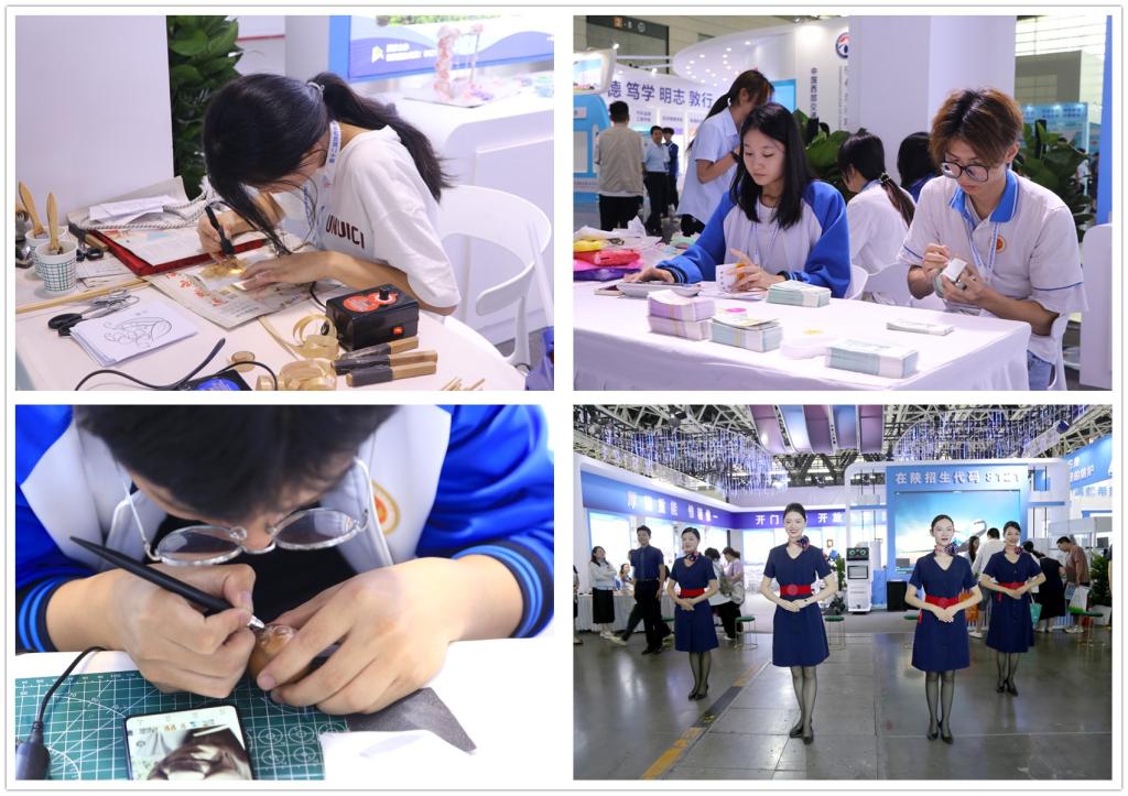 我校在2号馆设立特型展位,以全新面貌精彩亮相本届教博会。展区设计庄重大气、清新高雅,以校园文化标识和珠算造型为主要元素彰显了财经特色。通过壁挂灯箱展板、图文画册、师生作品展示、LED显示大屏系统展示的大量图文和视频,详细展现了我校实施“开门办学、开放办学、国际化办学”推进高质量发展,在党建引领、教学改革、校企合作、科学研究、国际交流合作、招生就业、社会服务、校园文化、思政教育等工作中的特色亮点和取得的丰硕成果。表演区学生的麦秆画创作、蛋壳雕刻、剪纸等手工现场制作精美雅致,空乘礼仪操表演、点钞和打传票动作行云流水,安防机器人、财务机器人科技感十足,吸引了众多考生和家长驻足咨询、欣赏。