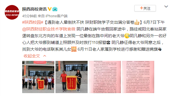 【网易新闻】遇到老人晕倒扶不扶 陕财职院学子的满分答卷!