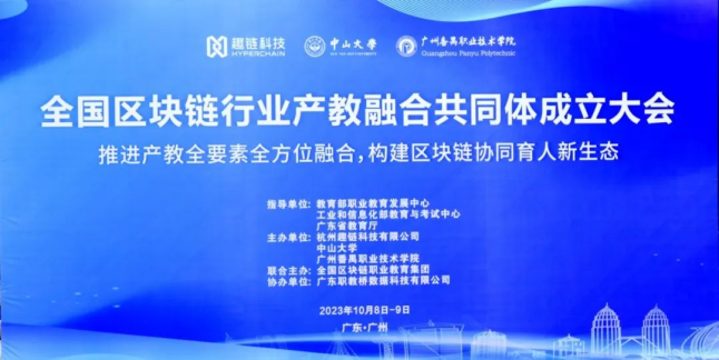 023年10月8日至9日,全国区块链行业产教融合共同体成立大会在广州召开,陕西财经职业技术学院选派区块链技术应用专业负责人参会。经全国区块链行业产教融合共同体理事会选举,该校成功当选全国区块链行业产教融合共同体副理事长单位。
