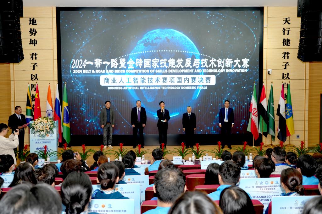 10月23日上午,2024一带一路暨金砖国家技能发展与技术创新大赛商业人工智能技术赛项国内赛决赛在我校成功开幕。中共陕西省委教育工作委员会委员、陕西省教育厅副厅长申雪峰,金砖国家技能发展与技术创新大赛技术委员会总监张云启,我校党委副书记、校长程书强,商业人工智能技术赛项专家组副组长雷悦,陕西省教育厅职业与成人教育处副处长周杰,重庆翰海睿智大数据科技股份有限公司总裁陈继,北京金山办公软件股份有限公司教考中心全国负责人张小平以及学校在校的领导班子成员出席,各院校参赛师生和学校二级学院、相关部门负责人参加了大赛开幕式。开幕式由学校副校长雷旭主持。