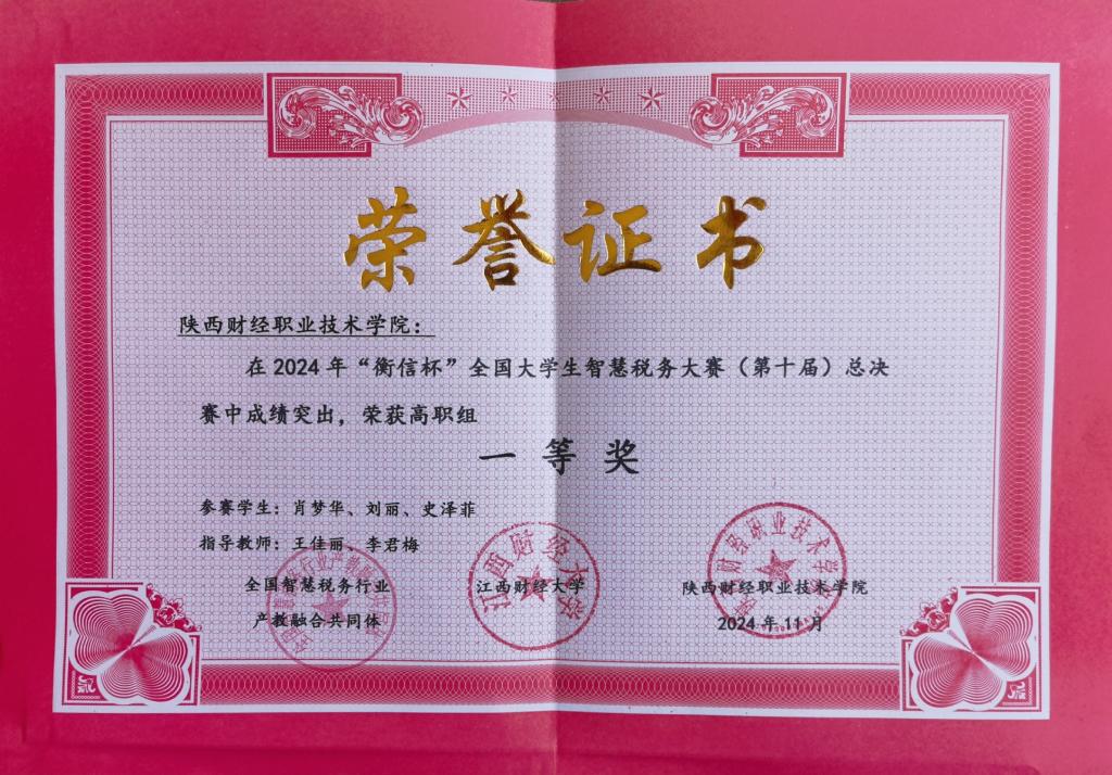 经过激烈角逐,由我校会计学院教师王佳丽、李君梅指导的肖梦华、刘丽、史泽菲、田梦婷、郭子怡、焦诗怡6名同学组成的两支队伍分获全国一等奖第一名和全国二等奖,获得全国第一名的三位同学(肖梦华、刘丽、史泽菲)凭借出色表现收到浙江衡信教育科技有限公司的免试入职通知书。