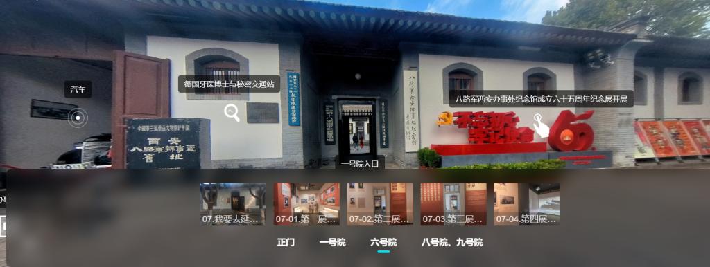 《“红色驿站”:八办记忆》由马克思主义学院教师郭松月、鲁雯婷指导,5名学生组成团队共同完成。该作品以丰富详实的党史资料为基石,利用全景摄影与VR技术,巧妙地融合了《毛泽东思想和中国特色社会主义理论体系概论》课程中关于统一战线的思政知识,将西安八路军办事处纪念馆陈列的线下展馆资源转化为了线上红色资源。以场景引入为脉络,全程搭配语音讲解,辅之以地图导览、原馆图片及学生讲解视频等多样化的形式,加入知识问答小卡片、党史普及等特色环节,细腻地还原了1号院至9号院的布展细节,生动地重现了西安八路军办事处的发展历程、人物故事等,通过身临其境地述说革命故事,激发了大学生对红色文化资源的创新探索与传承热情,为红色文化的传播注入青春活力。