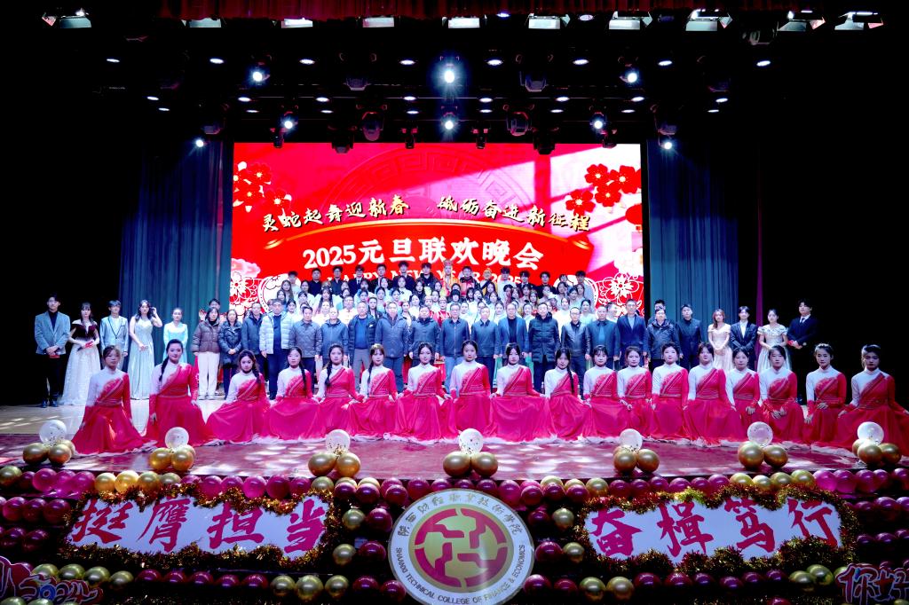 12月30日,我校在大礼堂举办“灵蛇起舞迎新春 砥砺奋进新征程”2025年元旦晚会。学校领导班子成员,学生工作处、教务处、保卫处、各二级学院党政负责人以及教师代表、学生代表共计1500余人欢聚一堂,辞旧迎新。本次晚会通过团委官方视频号“陕财职院团委”线上同步直播。