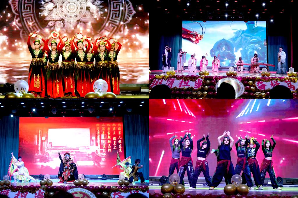 由杨梦涵老师和校民族舞蹈队演绎的舞蹈《醉春风》展现了中国折扇技法与古典舞身韵的完美结合,将浓浓的春意带到在场师生的心中。随后,侯清睿、韩宇翀与袁毅然老师和校文艺部民乐团带来的《经典影视主题曲联奏》将现场气氛推向高潮,琵琶、古筝、小提琴、萨克斯、交织在一起,余音绕梁,碰撞出了令人惊叹的火花。郭丹、吴一宣老师带领人文艺术学院学生表演的舞蹈《鼓声响起的地方》以灵动的舞姿和激昂的节奏,展示了少数民族人民的热情与活力。运动与健康管理学院与全北学院选送的舞蹈《寄明月》将古风与现代舞元素巧妙融合,优美活泼,尽显古韵新风。
