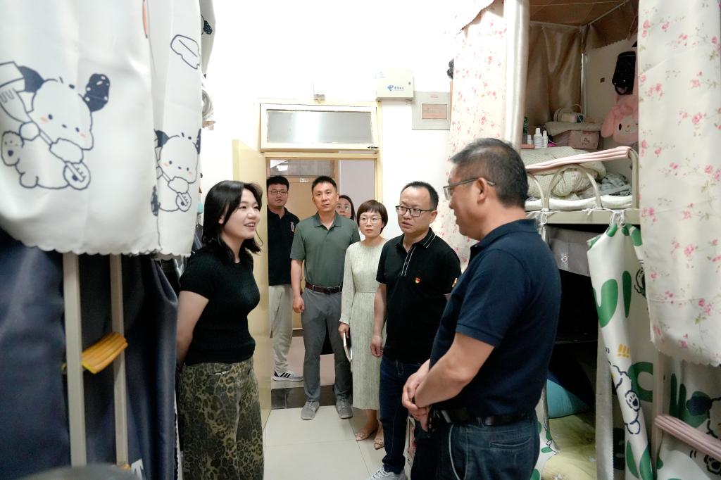 会议结束后,高玉峰一行人前往尚德书院党员宿舍进行了深入的走访,全面了解了学生的学习进展和生活状况。高玉峰对学生党员寄予了深厚的期望,他着重强调,作为学生党员,应当不断严格要求自己,时刻保持先进性,不仅要在学习上追求卓越,更要主动关心身边同学,积极传递正能量。高玉峰勉励大家,要充分发挥学生党员的先锋模范作用,成为引领校园文化、促进同学间团结互助的重要力量,共同营造一个积极向上、和谐共进的学习生活环境。