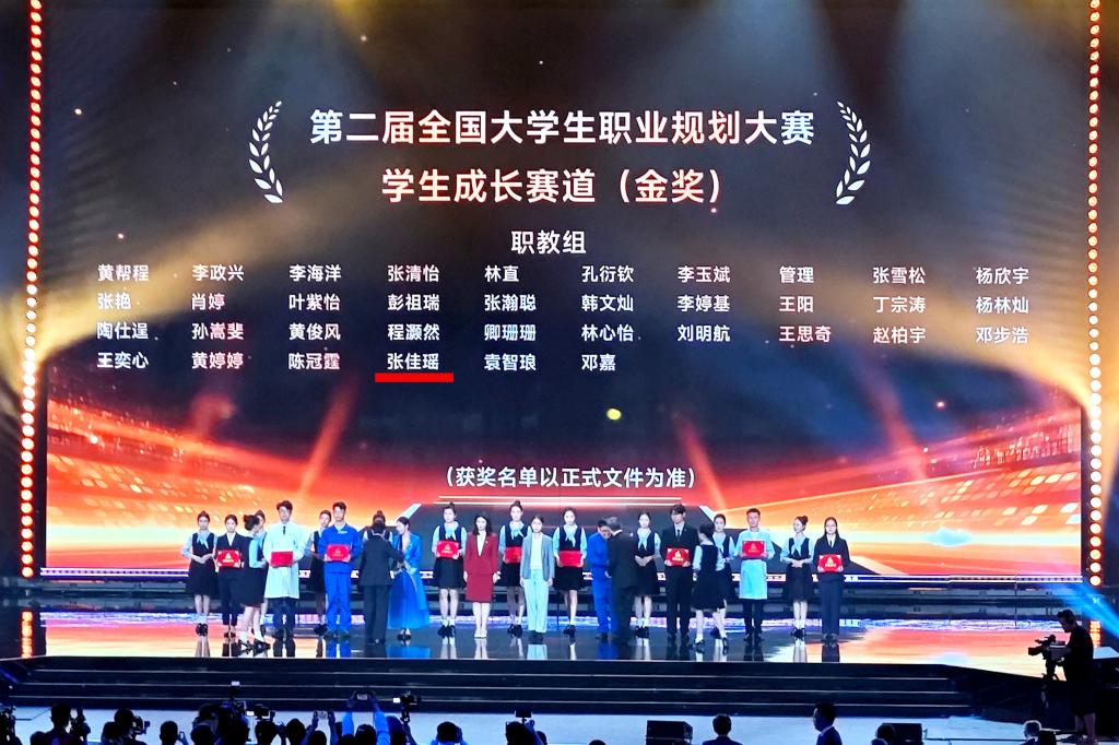 4月16日至19日,第二届全国大学生职业规划大总决赛在湖南长沙举行。经过激烈的角逐,我校数字媒体技术专业学生张佳瑶夺得成长赛道职教组金奖、学前教育专业学生范凤文获得就业赛道职教组银奖。继我校在去年首届大赛中斩获1金1铜后,今年再创佳绩,荣获1金1银好成绩,续写辉煌!