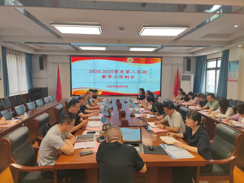 为推动学校教学工作高质量发展,6月3日,我校在办公楼四楼会议室召开2024-2025学年第二学期教学工作例会,校长程书强参会并进行工作部署,二级学院院长、副院长、教学科科长及教务处、学生处、教学质量管理中心(双高办)、教学督导委员会处科级干部等三十余人参会,会议由教务处处长刘军主持。